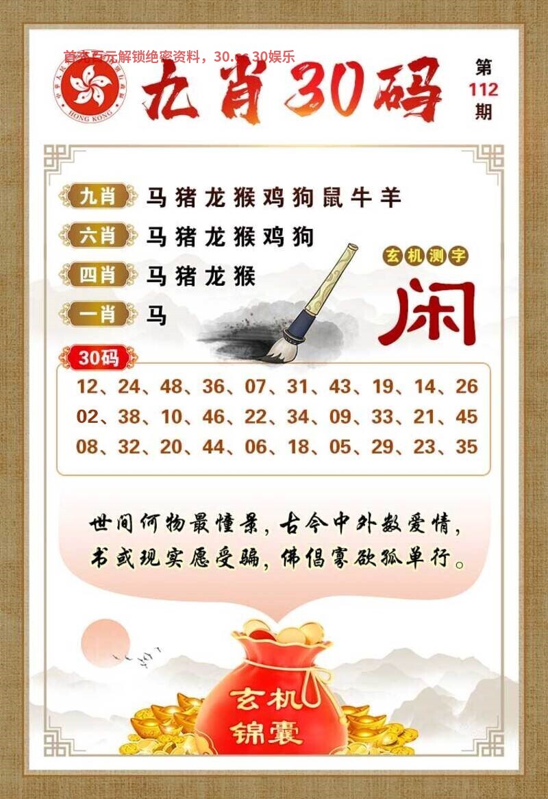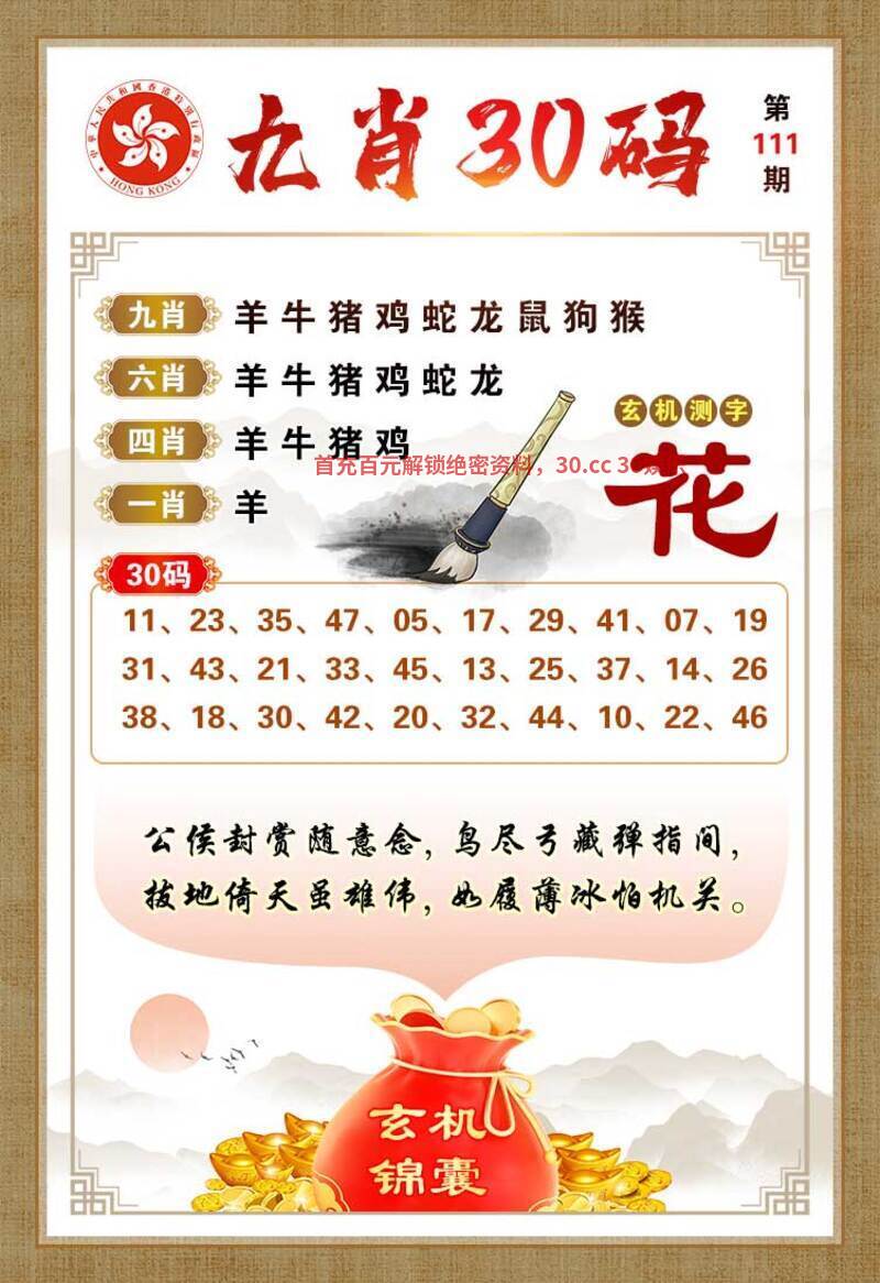 111期⑨肖:虎猪龙鸡羊兔狗牛:开马12